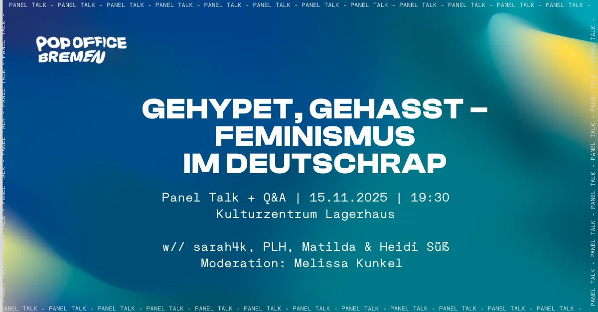 Im Deutschrap wird mal wieder mächtig gestritten, denn immer mehr FLINTA* Acts greifen selbstbewusst zum Mic und machen dem Patriarchat Ansage: Sprache und Geschlechterrollen werden umgedeutet, Machtstrukturen lyrisch umgedreht und das männlich dominierte Rap-Business ordentlich umgewälzt. Während viele das als feministische Revolution im Rap-Game feiern, wird den Künstlerinnen ebenso mit Empörung, Spott und Missachtung begegnet. So sehen sich viele Rapperinnen mit abwertenden Vorwürfen konfrontiert. Sie seien lediglich Industry Plants oder Quotenfrauen, die letztlich doch nur den vorherrschenden Male Gaze bedienen würden, wird behauptet. Ist an dieser Kritik etwas dran oder ist sie etwa bloß ein Ausdruck von Misogynie im Deutschrap? Wer äußert diese Kritik überhaupt? Und wie gehen die betroffenen Künstlerinnen damit um? Wir sprechen darüber mit sarah4k, PLH, Matilda und Heidi Süß. Moderiert wird das Panel von Melissa Kunkel